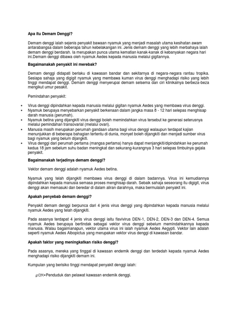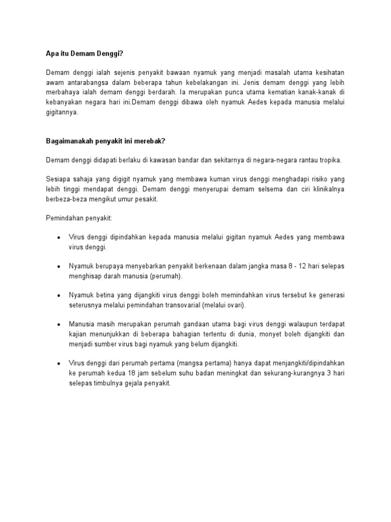 Contoh Karangan Bm Docx Demam Denggi Penyakit Demam Denggi Telah Mula Dilaporkan Di Malaysia Oleh Skae Pada Tahun 1902 Di Pulau Pinang Apabila Berlaku Course Hero